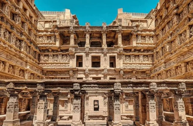 Adalaj Stepwell, located near Ahmedabad, is an intricately carved stepwell built in 1499 by Queen Rudabai. It served as a resting place for travelers and villagers, providing water and shade. The stepwell is five stories deep, designed in the Solanki style of architecture, and adorned with detailed carvings of flowers, animals, deities, and mythological scenes. It stands as a masterpiece of Indo-Islamic architecture and a symbol of Gujarat’s rich cultural heritage.