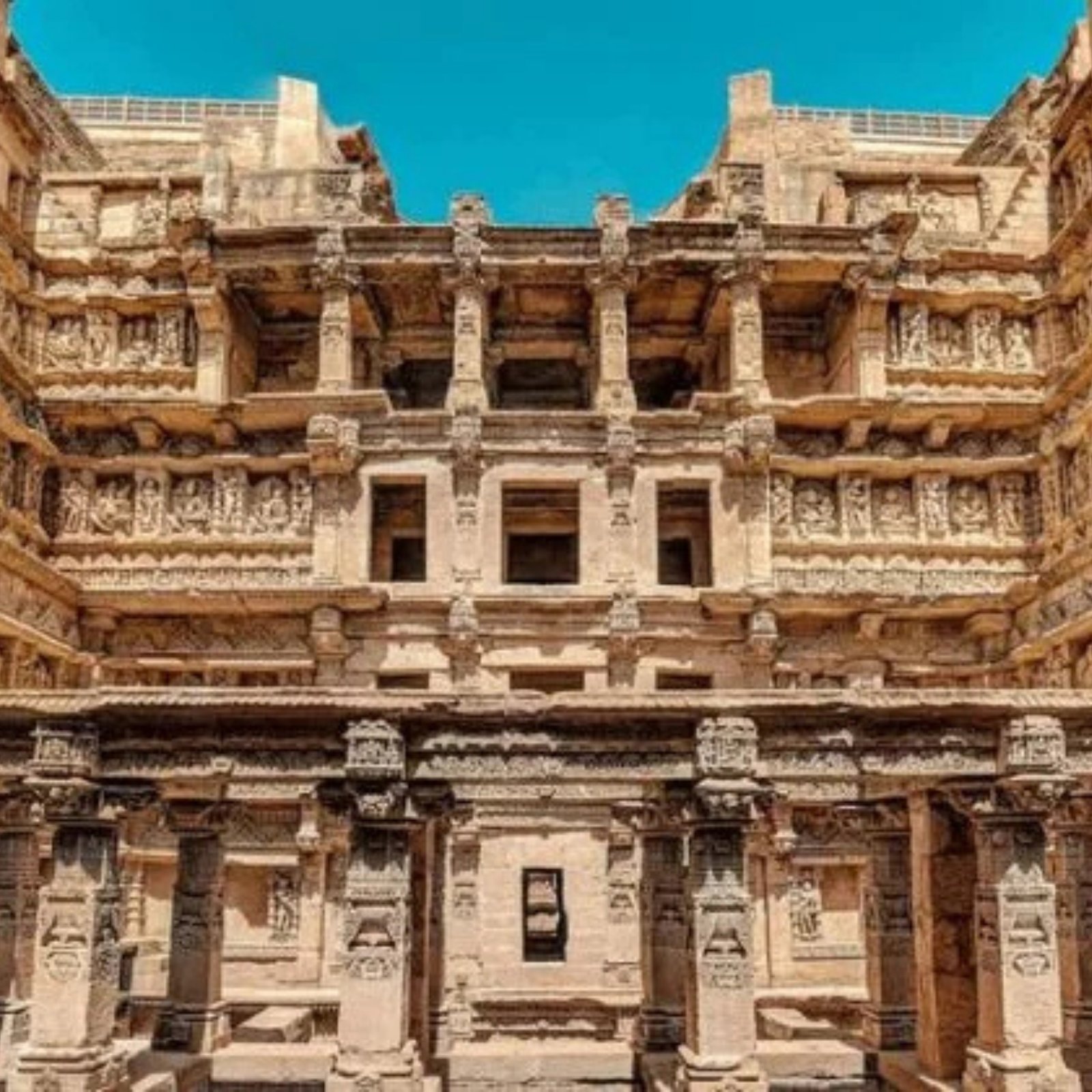 Adalaj Stepwell, located near Ahmedabad, is an intricately carved stepwell built in 1499 by Queen Rudabai. It served as a resting place for travelers and villagers, providing water and shade. The stepwell is five stories deep, designed in the Solanki style of architecture, and adorned with detailed carvings of flowers, animals, deities, and mythological scenes. It stands as a masterpiece of Indo-Islamic architecture and a symbol of Gujarat’s rich cultural heritage.